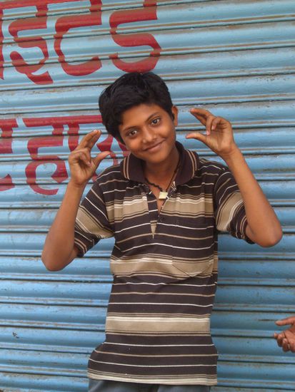 typische Handbewegung eines Inders - hier handelt es sich um einen Anhänger der Hare Krishna Bewegung