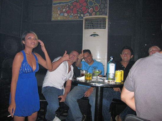 hinter mir Christian, an meinem Hals (was macht der da eigentlich???) Yellow, links seine Kellnerin, links davon der Besitzer der Nachbarbar