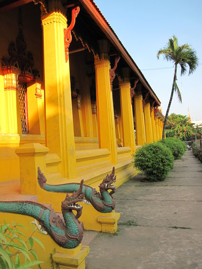 Nach einem Fruehstueck haben wir uns zunaechst noch ein wenig von der Fahrt erholt (Tahita war mit einem Lokalbus von Bangkok gekommen und hatte dementsprechend nicht so eine gute Nacht gehabt, wie ich) und sind dann losgezogen, Vientiane zu erkunden.