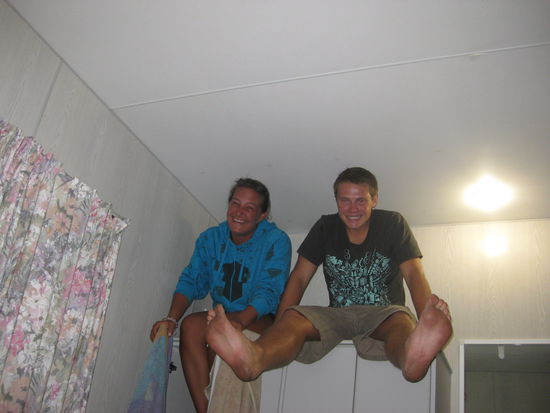 Nur die Frage mit der Unterkunft draengt schon wieder. Mit zwei grossen Autos in der Statd, wo parkt man da? Schon wieder Unmengen fuer's Hostel ausgeben? Die Caravanparks sind in der Stadt eben auch nicht gerade zahlreich und wegen Statdnaehe eher hochpreisig. Und wir sind spaet dran, da haben fast alle schon zu......und so landen wir aus lauter Verzweiflung in einer Luxuscabin fuer 100 AUD, das ist das billigste, was uns der Mann anbieten kann. Aber geteilt durch uns drei ergibt's den Preis von 'nem besseren Hostel, also nichts, wofuer wir ein schlechtes Gewissen haben muessten. Der Mann verspricht mir und Micha einen wunderschoenen Aufenthalt mit einem Augenzwinkern.....mann, nee, doch nicht so, ....aber wir nehmen's gelassen, packen Fab noch mit in die Cabin und nach Abendessen und grosser Abrechnung fuer die letzten Tage geniessen wir den Luxus eines richtigen Betts und verbringen den Abend mit lustigen Spielchen bis spaet in die Nacht.
