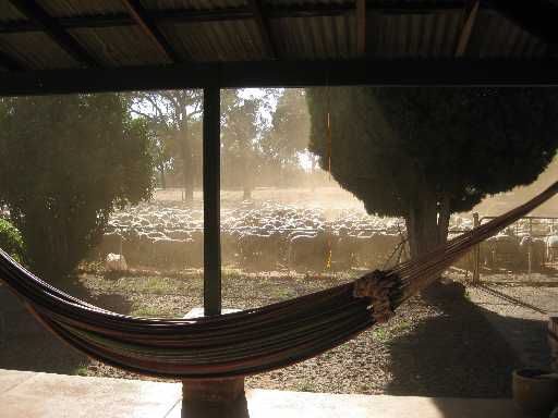 Schafe, ueberall Schafe....und ich lag grad so schoen in der Haengematte
