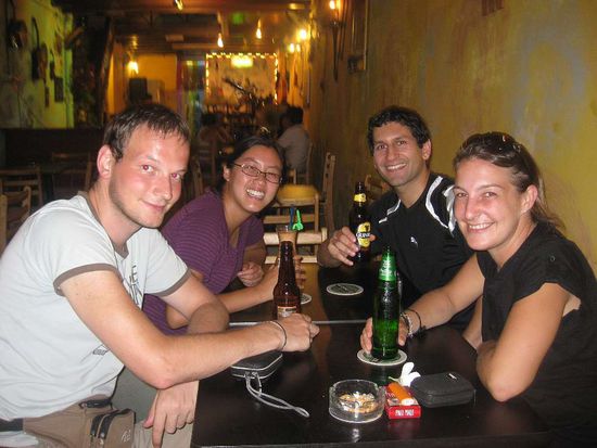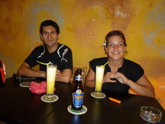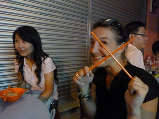 Eine kurze Busfahrt bringt uns über die Grenze nach Malaysia, und einen kurzen powernap später sind wir schon in Melakka. Die großen australischen Hostels sind in Melakka kleine guesthouses, und, ganz deutsche Mentalität, hab ich das meine vorab gebucht, doch ich habe mir für Asien feste vorgenommen, ab jetzt alles spontan und ohne große Vorbereitungen zu machen. Jedenfalls bin ich mit meiner ersten Unterkunft hier erwartungsgemaess ziemlich happy und innerhalb einer halben Stunde hat sich unsere kleine Truppe zusammengefunden, zweimal Deutschland, Californien, Norwegen und zweimal China machen sich zusammen auf den Weg, Melakka's Lichtermeer bei Nacht den Fluß entlang zu entdecken und irgendwo auf der Straße ein leckeres Abendessen zu finden. Zum Glück haben wir die zwei Mädels aus China dabei, sonst waeren wir wahrscheinlich in diesem Schlaraffenland verhungert. Aber fachmännisch werden wir mit allen Wünschen übersetzt und sitzen letztendlich glücklich vor dampfend heißen Schüsseln mit allerlei Köstlichkeiten und stochern, der eine geübter als der andere, mit chopsticks in Reis und Nudeln rum. Ich für meinen Teil bin froh, dass ich schon in Austtralien jede Gelegenheit wahrgenommen hab mit Stäbchen zu essen, wenn ich mir die anderen so anschau. Nach einem letzten Cocktail verabschieden wir uns dann aber doch zeitig ins Bett.