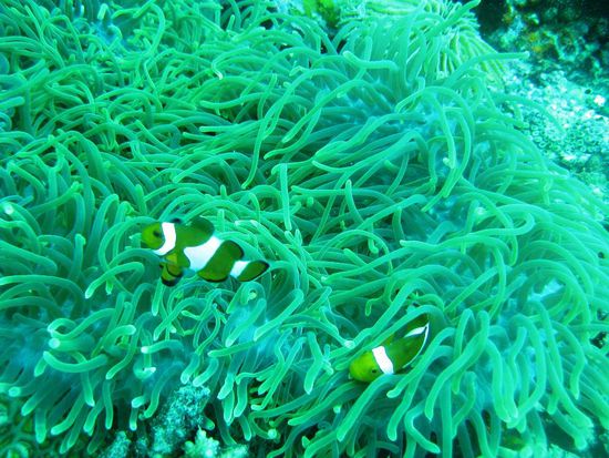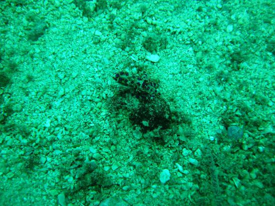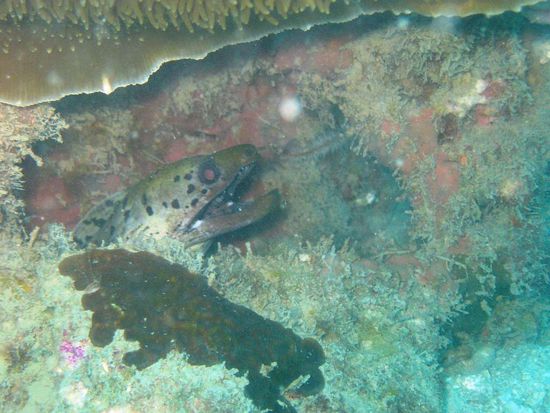Mei, gleich beim ersten Tauchgang dacht ich, ich werd Fakir und hab vor lauter fotografieren die Seeigel übersehen. Des tut fei weh, wenn ma dene ihre Stacheln im Bein hat. Nach fünf Minuten spür ich's aber schon nimmer. Ich frag also, wieder an der frischen Luft, meinen Instructor, ob sich des entzündet oder ob ich irgendwas machen muß, ich seh mich schon mit eiternden Wunden in Malaysia rumhupfen. Aber der meint, ich soll 'nen FlipFlop nehmen und drauf haun. Ich denk der spinnt, und schau ihn wahrscheinlich entsprechend an.