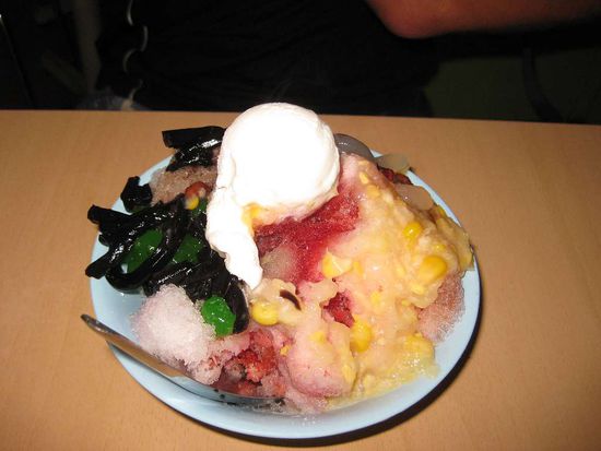 Ais Kecang ist eigentlich eine Nachspeise, aber mit Bohnen und Mais, und auch damit kann ich mich überhaupt nicht anfreunden. Und die Muscheln, die waren ungefähr so lecker wie Austern.....grrrrr