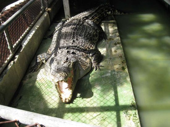 Grausig da. Pfui, schaemt Euch!!!! Vor der Show kann man sich die dort gehaltenen Schlagen und Reptilien anschaun. Ich schaeme mich in grund und Boden, hierfuer Geld gezahlt zu haben. Schlagen in Glaskaesten die nicht Mal gross genug fuer einen artgerecht gehaltenen Goldfisch waeren, voller Schlangenhaut und Dreck von ein paar Wochen, das zur Verfuegung gestellte Wasser ist braun-trueb, die grossen Anacondas haben nicht Mal genuegend Platz um sich im Viereck auszustrecken, kein Laub, keine Versteckmoeglichkeit, die Warane sind zu zehnt (oder sogar mehr) in einen Kaefig gesperrt, die kratzen am Maschenzaun und wollen dringend raus, sie sitzen sich auf der Pelle, so klein ist das Gehege, und der Gipfel ist das Leistenkrokodil, das einen Kaefig in der Groesse von sich selber und nochmal so viel Wasser hat (wie soll das da rein- und wieder rauskommen, mit elegantem sidestep???) Es ist eine Schande und zum Schaemen.