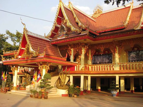 Wir überqueren die sogenannte "Thai-Lao-Freundschaftsbrücke" über dem Mekong, bringen das lästige Visums-Gedingens hinter uns und fahren quer durch Vientiane zu ihrem Haus, das wirklich schön ist, und machen uns alle getrennt auf, um Vientiane zu besichtigen, verabreden uns zum gemeinsamen Abendessen.