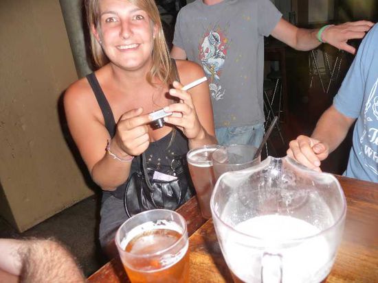 Zwei Tage eine einzige große Wiedersehens-, Farm vorbei- und Ausgelassen sein-Party im Vic. Kurz anstellen für's kostenlose Backpackeressen (das übrigens hier nicht so übel wie in Cairns ist) und dann hoch die Tassen. Auf unseren Wunsch spielt der DJ sogar die Farmhymne "Roxanne" und fleißig stoßen wir auf die neu gewonnene Freiheit alle zusammen an. Aus dem einen Club fliegen wir raus, weil ein gewisser jemand mit dem Kopf auf der Tischplatte fast einschläft (das Argument, dass er sich nur kurz ausruhen wollte zählt für den Türsteher, der ihn buchstäblich am Krawittchen packt und hinausbegleitet, nicht), dann häält uns die Polizei auf, weil, weil zwei andere mitten in der Mall auf's Klo müssen und's nicht mehr abwarten konnten, und in den zweiten Club kommen wir erst nicht rein, weil ein anderer gewisser jemand schon zu betrunken ist.