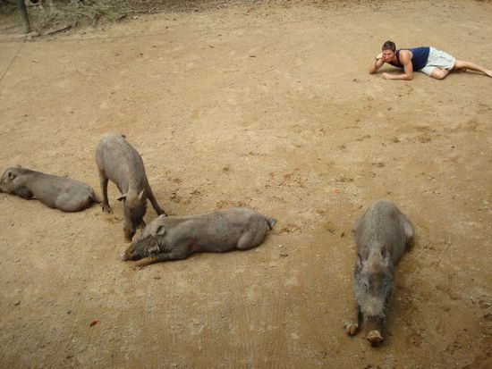 In den Pausen wurde sich die Zeit anderweitig vertrieben, relaxed in der Haengematte, oder die Fronten mit dem dorfaeltesten Wildschwein wurden geklaert.
