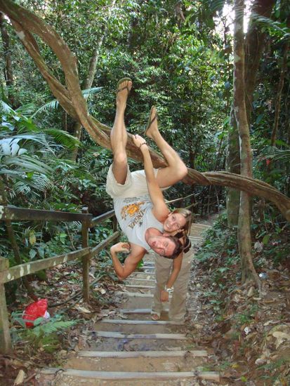 Nach gefuehlten 7 Stunden Rueckfahrt im Auto machten wir uns auf, in die schwindeligen Hoehen des Canopy Walkways in Poring.