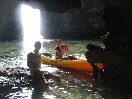17.03. Heute haben wir eine Ganztagestour mit dem Kayak unternommen, Dreierkayak - Matze und Rungiii paddeln, Jule sonnt sich und macht Fotos. War wirklich eine lohnenswerte Unternehmung, da man nicht mit den anderen Touristen von Sehenswuerdigkeit zu Sehenswuerdigkeit umhergeschippert wird. Allein konnten wir die Zeit (Paddelgeschwindigkeit) selbst einteilen und konnten dabei so manchen abgelegenen Strand und versteckte Bucht, Hoehle, Cave entdecken.