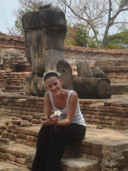 Dritter Tag in Bangkok, naja eigentlich nicht in Bangkok, sondern in der ehemligen Haupttadt Ayuthaya. Mit dem Zug 1,5 Stunden hin fuer sage und schreibe 20 Baht, was circa dem Gegenwert von 40 bis 50 Cent entspricht. Da war das Taxi zum Hauptbahnhof alleine teurer. Neben der unglaublichen Hitze machte Michi auch das Stehen in der 3. Klasse zu schaffen. Halb triefend kamen wir aus dem Zug raus. Aber von Ayuthaya waren wir dann sehr beeindruckt. Es stehen viele - sehr viele - alte Ruinen rum. Wahnsinn schaut einfach auf die Bilder. Ich dachte, dass gibt es nur in Suedamerika, aber so Art Maya-Tempel gibt es auch hier, nur viel schoener.
