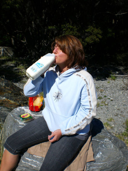Die zweite gute Erinnerung zauberte auch die Natur. An diesem Tag haben wir nämlich den Beweis dafür gesehen, warum NZ "Das Land der langen weißen Wolke" genannt wird. Anbei das Foto ...... und da wären wir schon bei meiner schlechten Erinnerung. Leider gibt es von dieser Wolke kein Foto mehr, weil ich meine Kamera in den Fluten eines Gletscherbaches versenkt habe. Wir mussten den Bach auf Steinen überqueren und da ist es geschehen. Gott sei Dank habe ich den Tag zuvor meinen vollen Chip gegen einen leeren gewechselt .