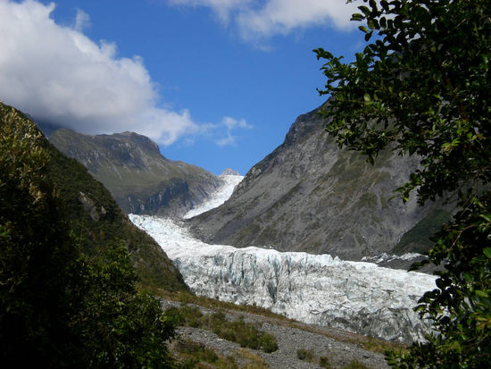 Nach einer kurzen Frühstückspause, hießen unsere nächsten Ziele Fox- und Franz Josef Glacier. Diese Gletscher kann man z.B. mit dem Großglockner überhaupt nicht vergleichen. Sie dringen bis ins Vorland vor und neben ihren Zungen, die an der dicksten Stelle so dick sind, wie der Eifelturm hoch ist, wächst der Regenwald. Man kann sich den Gletschern bis auf wenige Meter nähern. Obwohl man überall davor warnt die Absperrungen zu übertreten, gibt es immer wieder Wahnsinnige, die sich diesen "kalbenden Monstern" gefährlich nähern. Im Luftraum über den Gletschern hört man ständig die Sightseeinghubschrauber fliegen. Mit diesen könnte man auch auf dem Gletscher landen. Da die Preise eindeutig unser Reisebudget sprengen würden, haben wir das Ganze zu Fuß besichtigt.