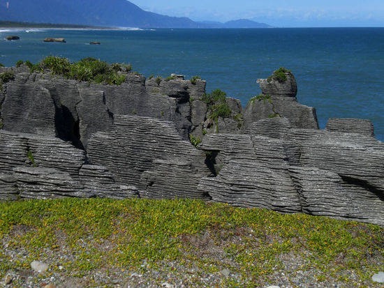 Die nächsten 350 km am nächsten Tag waren dann nur mehr ein Katzensprung. Zum Besichtigen gab es auf dieser Strecke zuerst einmal die "Pancake Rocks". Wenn jemand die Pancake Portionen in diversen amerikanischen Restaurants kennt weiß man, woher der Name kommt.