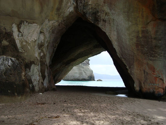 machten wir nämlich eine kleine Wanderung zur Cathedral Cove. Ein rießiger, höhlenartiger Durchgang am Meer. Gott sei Dank war das Wetter zur Zeit der Wanderung noch relativ gut, denn danach regnete es wie aus Kübeln.
