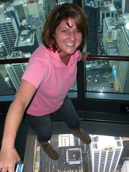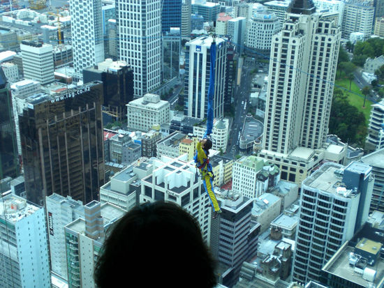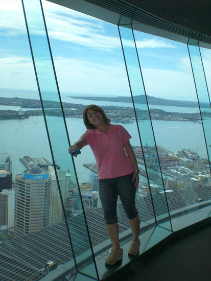 Am Tag darauf machten wir die Innenstadt unsicher. Unser erstes Ziel war der Sky-Tower. Dieser Turm hat zwei Besucherplattformen. Eine auf 184 und die zweite auf 220 Meter Höhe. Für meine Verhältnisse war ich an diesem Tag lebensmüde. Man kann sich nämlich in 184 Meter Höhe auf eine 3,8 cm dicke Glasscheibe stellen. Wie man sieht, hab ich mich getraut. Der Blick ist im wahrsten Sinne des Wortes atemberaubend.