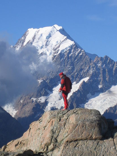 Das Naechste Ziel war am Dienstag die Region um den beeindruckenden Mount Cook. Nach einer schoenen Anfahrt durch sich staendig aendernde Landschaft, vorbei an wunderbaren Seen und mit einem Sommersonnigen Cafestop ging es kilometerlang in ein Tal wie aus dem Herrn der Ringe hinein. Nach der ersten Nacht im Zelt sind wir am naechsten Morgen als die Sonne im Zenit stand losgelaufen und in einer schweissteibenden Aktion die 1100 Hoehenmeter zur Muellerhut raufgestiegen. Es hat sich gelohnt - wir konnten dort bei ueberwaeltigender Aussicht und bei netter Berggesellschaft uebernachten. Bei Vollmnond wurden uns grandiose Ausblicke auf den Mount Cook geschenkt.