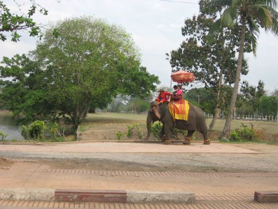 Ayutthaya, eine der ehemaligen Hauptstaedte Thailands, hat sehr viele prächtige alte Tempel zu bieten. Da wir nur 2 ½ Stunden Zeit hatten, weil wir zeitig am Abend in Bangkok ankommen wollten, um uns abends noch mit unseren österreichischen Freunden treffen zu können und ein Hotelzimmer zu checken, gaben wir unsere Tramperrucksäcke einfach am Bahnhof beim Bahnhofsvorsteher ab und charterten kurzerhand ein Tuk-Tuk für eine Rundfahrt zu den schönsten fünf Tempeln der Stadt. Der Sightseeing-Marathon führte uns unter anderem zum Wat Mahathat, Wat Panan Choeng und zum Wat Yai Chaya Mongkol - siehe die Bilder weiter unten.