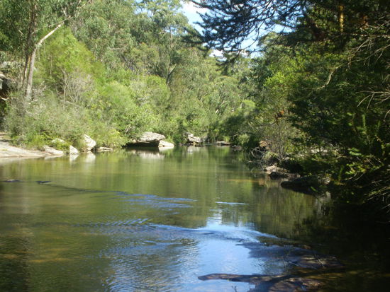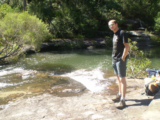 Sonntag hat Henrik mich auf unsern ersten Walk in den Royal Nationalpark mitgenommen und mit Klein-Hugo auf dem Ruecken stapfte Henrik voraus und ich kraftvoll hinter her. Die "Karloo's Rockpools" hier