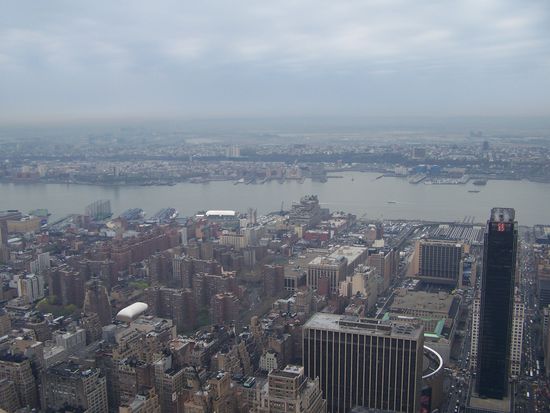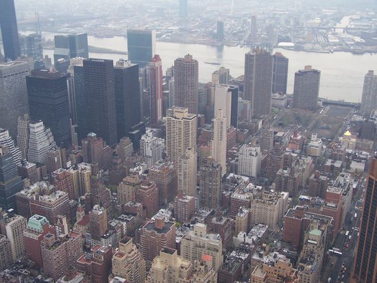 Natürlich bin ich auch rein da, schon allein, um einen Blick auf die berühmte Oyster Bar zu werfen, aber die Fotos sind leider nichts geworden...Auf der 42nd Street ging´s westwärts und dann ragte auch Programmpunkt Nr. 1 vor mir auf: Empire State Building !!! Ich habe Höhenangst und die 381 m dieses Wolkenkratzers sahen ekelhaft hoch aus. Aber das war jetzt egal: New York ohne Empire State Building geht ja gar nicht ! Das nächste Problem war die Warteschlange - endlos. Und ich war noch nicht mal drinnen ! Ich entdeckte ein Schild, auf dem Express Tickets angeboten wurden - erheblich teurer mit 40 statt 18 USD, aber in meinem Fall war Zeit Geld und ich erklärte dem Ordner, ich wolle ein solches Express Ticket kaufen. In nullkommanichts stand ich daraufhin vorm Ticketschalter, löhnte die 40 Dollar und wurde dann exklusiv an allen weiteren Warteschlangen direkt zum Lift geführt. Schon als ich die Schlange innerhalb des Gebäudes gesehen hatte, hielt ich die 40 USD schon für sehr gut investiertes Geld !