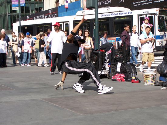 Wieder unten auf der Straße kam ich an NY´s Public Library vorbei. Auf den Stufen der Bibliothek ließ ich mich kurz zum Verschnaufen nieder, denn hier wurde eine tolle Break-dance-Vorführung auf der Straße dargeboten. Cool !