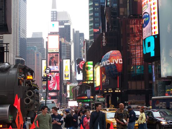 Mein nächstes Ziel war das Greyline-Büro irgendwo an der 39. Straße oder so, um dort das per internet gebuchte Ticket abzuholen. Würde ich übrigens nicht nochmal so machen ! Man kann das Ticket vielerorts in New York direkt an den Haltestellen kaufen, zahlt unwesentlich mehr, erspart sich aber den Weg in deren Büro. Ich wanderte wieder auf der berühmten 42nd Street entlang, also dem theatre-district NY´s und plötzlich eröffnete sich der Anblick auf den Times Square ! Times Square muss magnetisch sein, denn man kann da nicht vorbeigehen - selbst, wenn man auf dem Weg zu einem anderen Ziel ist - es zieht einen unweigerlich dorthin !