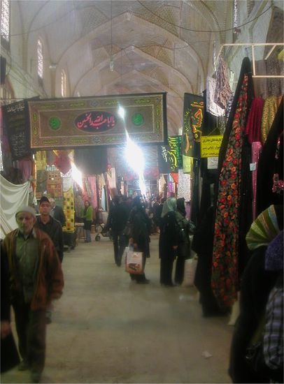 Wie auch die anderen Bazare ist der Bazar von Shiraz ueberdacht. Die unverputzten Lehmziegel, die im Gewoelbe des Bazars wie auch in vielen Moscheen, Palaesten und Privathaeusern verwendet wurden, wurden oft so verlegt, dass sie verschiedene Muster bilden.