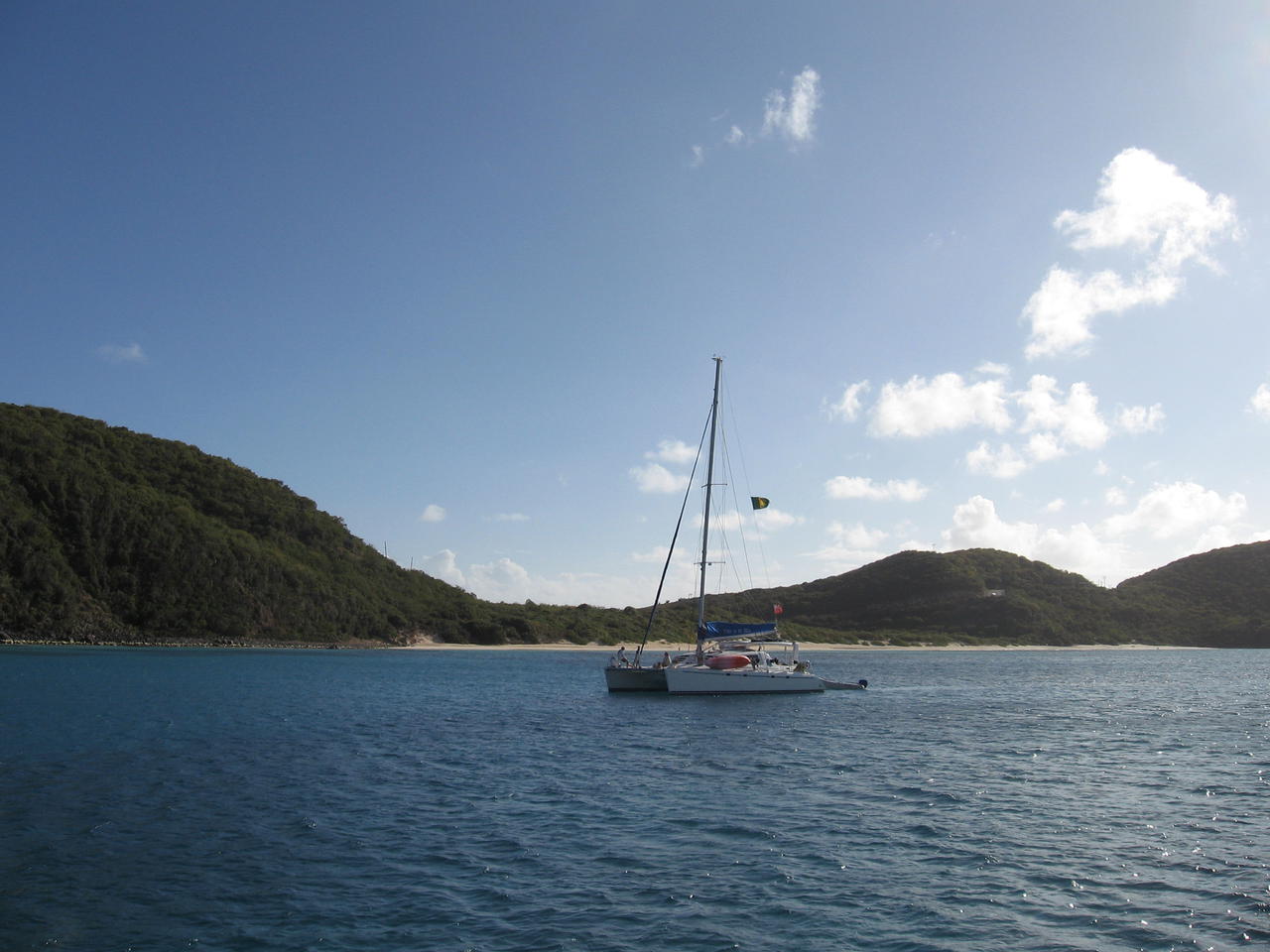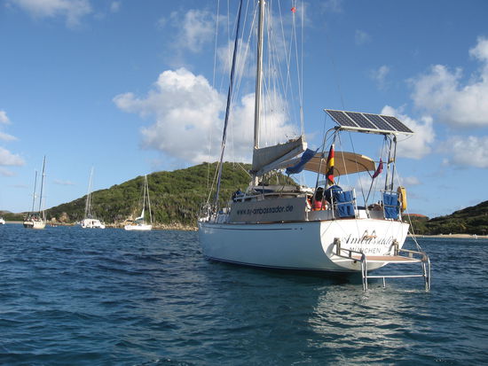 Um 2 Uhr nachts fällt der Anker hinter Necker Island am Nordzipfel der British Virgin Islands. Wir genießen die laue Nachtluft bei unserem verdienten "Ankerbier", das von nun an zur Routine gehören wird. Genauso am nächsten Morgen ab 7.20 Uhr, wenn die Sonne aufgeht, der Sprung von der heruntergelassenen Badeplattform ins 24 Grad warme Karibikwasser mit anschließendem Sauberduschen unter der Süßwasserdusche.