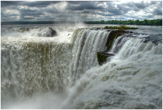 Das Finale bildete La Garganta del Diablo (Teufelsschlund). Hier geht man auf einem Steg 1,2 km ueber den ewig breiten Fluss (wo wir ein sonnenbadendes Krokodil auf einem Stein gesehen haben) spaziert und schliesslich die Wassermassen an einem Punkt in ein Loch stuerzen. Hier erlebten wir wohl am beeindruckendsten die Dimension dieser Wasserfaelle. Mir (Julia) wurde schwindlig, wenn ich einige Sekunden in die Fluten starrte. Leider war zu diesem Zeitpunkt schon lange der Akku der Kamera leer, sodass wir keine Fotos mehr machen konnten Um einen Eindruck davon zu vermitteln, haben wir ein Bild aus dem Internet gesucht (halt nicht mit blauem Himmel, Regenbogen und Schmetterlingen, wie bei uns).
