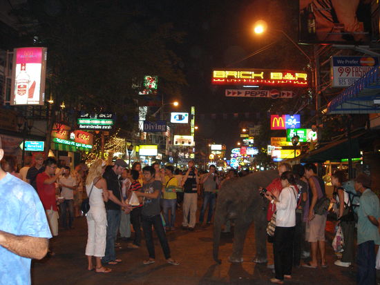 Die ueberfuellte Touristenstrasse hat Charm und bietet gutes Essen zu fairen Preisen: Frisches Obst und leckere Nudelgerichte fuer 25 Bath. Die Klamottenlaeden lassen sich weniger aufs Handeln ein, als in den Reisefuehrern steht. Rockmusik an jeder Ecke... einer von uns freut sich darueber! =)