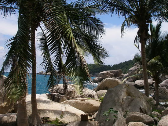 Immer noch auf Kho Tao. Das Wetter hat sich schlagartig geaendert und Sonnenschein kam raus! Wir sind zu einem feinen Sandstrand auf der Suedseite der Insel gegangen und Daniel kam aus dem Schwimmen und auf Felsen Herumklettern gar nicht heraus. Abenteurer bleiben eben immer Abenteurer!