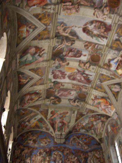 Die Decke der Sixtinischen Kapelle wurde von Michelangelo ( 1475-1564 ) von 1508-1512 gemalt. 800 qm Flaeche waren zu bemalen. Ziemliche Arbeit fuer eine Person