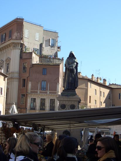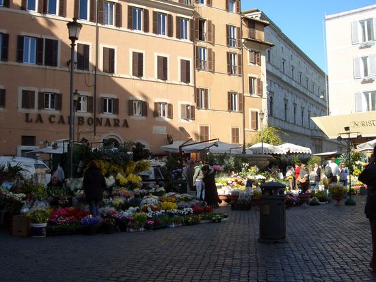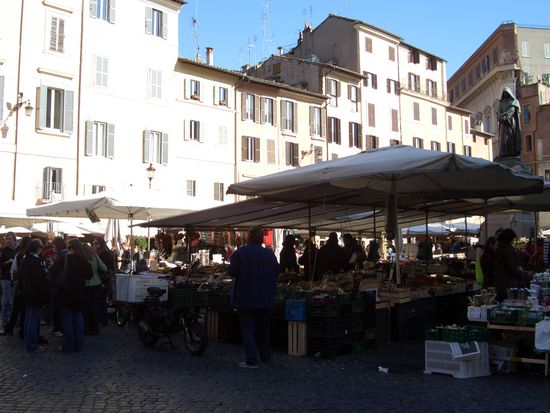 Nach einem sehr leckeren Panini und dem Kauf von einigen Postkarten finde ich mich unvermittelt auf dem Campo de Fiori wieder und in einem netten Café.