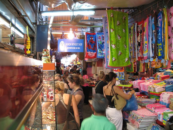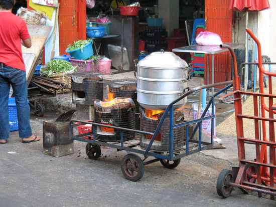 Die Taximafia weigert sich hier komplett, mich nach Banglampoo zuruechzufahren, eine Strecke von ca. 4 km. Hier gibt es ausser dem Bussystem, das man im dem Verkehrschaos nicht so schnell durchschauen kann keine anderen Moeglichkeiten, also entscheide ich micht, nach Westen zum Fluss zu laufen und verfehle die Grobrichtung etwas, lande dabei aber in Chinatown und mache dort noch einen ausgiebigen Rundgang und sehr interessante Beobachtungen