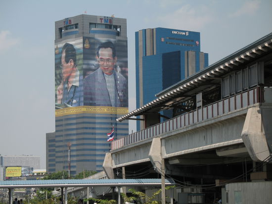 Hier ist sogar ein komplettes Hochhaus mit dem Bild des Koenigs versehen, beeindruckend oder befremdend, das liegt sicher im Auge des Betrachters...