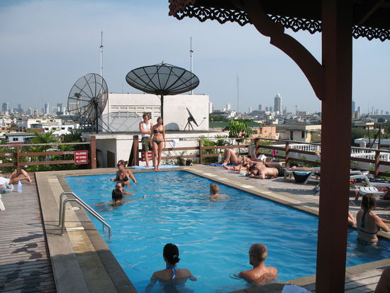 Erst jetzt realisiere ich, dass mein Hotel einen Pool auf dem Dach hat, also nix wie rauf...
