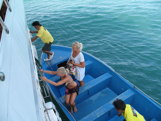 ... die dann ebenfalls mit dem Taxiboot an Bord gebracht werden.