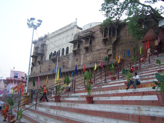 Ankunft in Varanasi. Auch hier soll ein Fahrer für mich bereit stehen. Tut er auch. In Begleitung meines Guides für die nächsten 48 Stunden. Er heißt Rahul, ist extrem jung (22) und wahnsinnig neugierig. Damit habe ich kein Problem und beantworte all die üblichen Fragen nach meinem Familienstand usw. Ich kugele mich vor Lachen, als er mit extrem betroffenem Gesicht sein tief empfundenes Mitleid angesichts meiner Ledigkeit äußert. Wer als alleinreisende Frau auf derartige Mitleidsbekundungen keine Lust hat oder findet, daß das niemanden etwas angeht oder sich allzu heftig flirtende Inder vom Hals halten will, erfindet besser einen Ehemann + Kinder + Ausrede, warum die nicht mit sind. Gefakten Ehering nicht vergessen ! Mir ist´s egal und ich finde die Reaktionen auf die Wahrheit immer recht spannend. In Rahuls Fall bedeutet das, daß er mich manchmal anstarrt, als käme ich mindestens vom Jupiter. Naja, das "Vergnügen" sei ihm gegönnt !