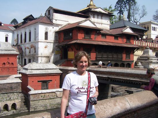 Das ist doch jetzt mal das beste Beispiel dafür, wie man sich perfekt ins Fettnäpfchen setzt ! Die Tussi auf dem Foto bin ich, die ich mir sonst ja durchaus Gedanken über passende Kleidung mache. Und was habe ich an ? Ein T-Shirt mit dem Aufdruck "shake your Buddha" !!! Schön, Sabine, hast du toll hingekriegt, heute ausgerechnet dieses T-Shirt anzuziehen ! Der Schriftzug dann auch noch schön quer über dem Busen und eng. Was habe ich mir heute morgen um 06.00 Uhr dabei gedacht ? Nichts natürlich, es war das letzte saubere T-Shirt in meiner Tasche. Eine Entschuldigung, die nicht wirklich zieht, denn welcher Teufel hat mich eigentlich geritten, dieses T-Shirt überhaupt einzupacken ??? Na klar, hat keiner was gesagt. Nein, nicht wahr: Sunil hat mein T-Shirt durchaus zur Kenntnis genommen und mich ziemlich konsterniert gefragt, ob ich sowas in Deutschland gekauft hätte ? Ja, habe ich. Damit ist das Thema vom Tisch, aber ich habe das Gefühl, daß er die "message" meines T-Shirts nicht wirklich lustig findet. (Obwohl: Was ist die message von "shake your Buddha" ???)