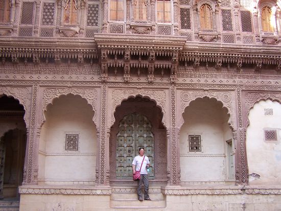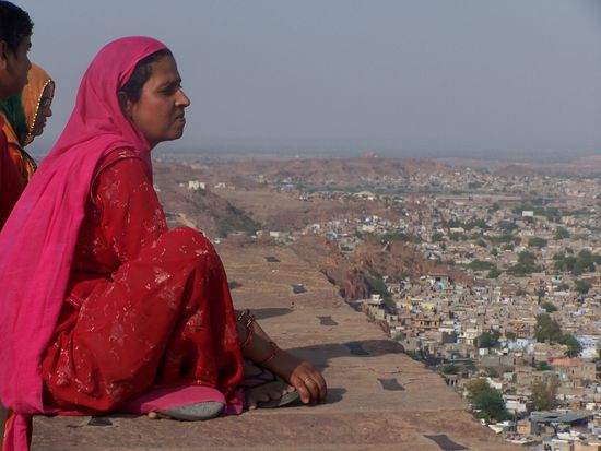 Ich beginne, mit meinem Camcorder road-movies zu drehen, denn um so dichter wir uns Jodhpur nähern, desto mehr ist los auf den Straßen. Als erstes stoppen wir am wirklich wunderschönen Fort von Jodhpur, das ich begeistert besichtige.