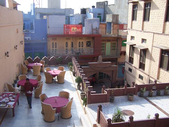 Die letzte Nacht ist jetzt etwas kürzer gewesen, aber ich werde mal wieder heute morgen von der Lady des Hauses mit einem umwerfenden Frühstück geweckt. Sie hat mir prima Tee gekocht, ein Omelett gebraten, Toasts gemacht, Obst zurechtgelegt und alles liebevoll angerichtet. OK, gestern Nacht hat sie unsere späte Ankunft mit strafenden Blicken quittiert, weil sowas für eine indische Frau einfach undenkbar ist. Aber ich bin nunmal keine Inderin und werde auch nie eine werden. Allerdings denke ich schon drüber nach, ob ich jetzt irgendwie die indische Kultur vergewaltige, wenn ich mich europäisch benehme. Nein, ich bin sicher, daß nicht. Ich kleide mich entsprechend der indischen Erwartungen und das ist dann schon mal die Hauptsache. Ich sehe andere Touristinnen, die in sehr kurzen Shorts und Spaghetti-Träger-Tops ohne BH durch die Gegend laufen, das ist nun wirklich super-daneben.
