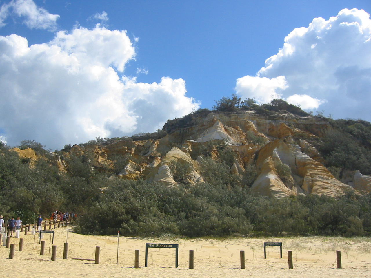 Da sind wir auch schon wieder...mit tollen Fotos und hoffentlich interessanten Neuigkeiten für die treuen Leser. Die letzte Woche haben wir auf der weltgrößten Sandinsel verbracht. Die Insel ist 123 km lang und 25 km breit, also nix für Fußgänger. Neben endlos langen Sandstränden und Dünen gibt es bunte Sandsteinformationen, welche sich je nach Tageszeit von gelb auf rot verändern. Desweiteren besteht die Insel aus zahlreichen Mangrovenwäldern, subtropischen Regenwäldern und man kann eine Menge Vogel- und Reptilienarten, sowie "importierte" Tiere wie Wildpferde und Dingos beobachten. Man hat die Auswahl zwischen 40 verschiedenen Süßwasserseen, in denen man schwimmen kann und teilweise auch Schildkröten bewundern kann. Zu den schönsten zählen der Lake Mc Kenzie, mit seinem wirklich kristallklaren und leuchtblauem Wasser am Ufer, der Lake Wabby, Lake Boomanjin mit seinem rotfarbenen Ufern und Lake Birrabeen. Weitere Sehenswürdigkeiten sind das Maheno-Wrack, die Klippe namens Indian Head, von der man des Öfteren Haie, Delfine, Mantarochen, Meeresschildkröten und wenn man extrem viel Glück hat sogar Wale sehen kann, die Champagner-Pools und der Eli-Creek.