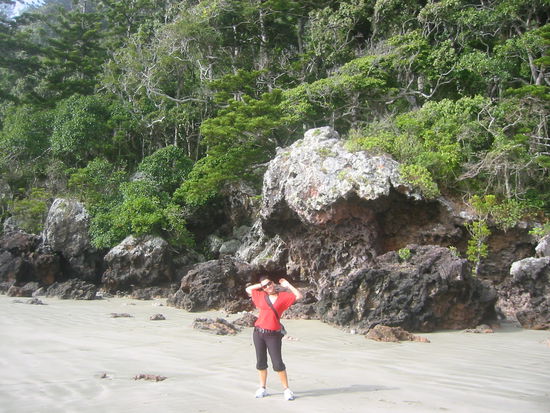 Nach einer angenehmen Nacht und ausreichend Schlaf ging es dann mal wieder auf Wandertour, einem 3km langen und steilen Track auf die Spitze der Insel. Was dabei echt faszinierend war, war der total vernebelte und durch die Sonne aber total grellen Strand. Der Nebel lichtete sich aber zum Glück bei der Ankunft auf dem Aussichtspunkt und wir konnten einige Meeresschildkröten sichten. Sind danach dann einen Track gelaufen, der eigentlich nur bei Ebbe möglich ist, da wir nicht wieder den ganzen Weg zurück wollten. Da aber erst kurz vorher das Wasser begann, abzulaufen, mussten wir einen felsigen Teil durchs Wasser laufen. Sind dann aber gut angekommen und haben dann etwas später noch den Versuch gewagt, auf eine anliegende Insel zu laufen, was sich als sehr schlammig, rutschig und schwierig rausstellte, vor allem wenn man nur in Flip-Flops unterwegs ist!