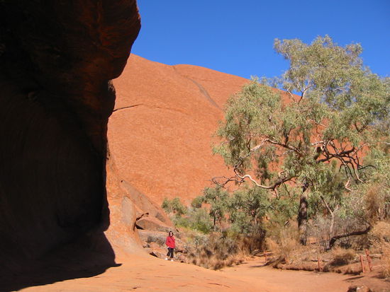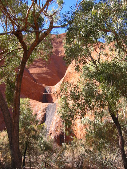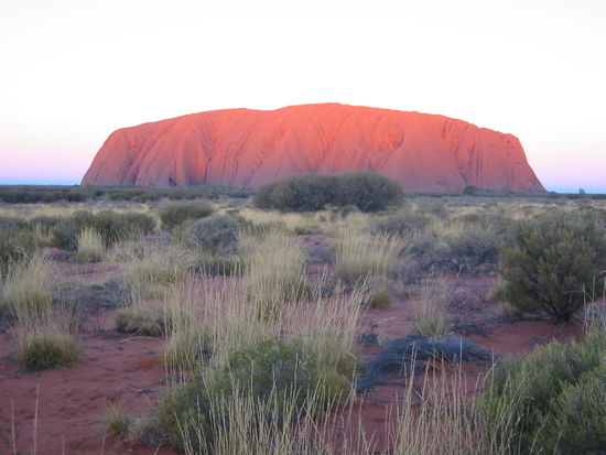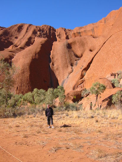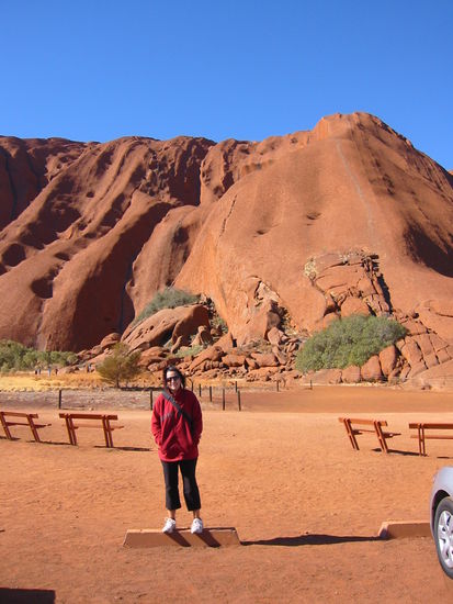 Kurz nach Tennant Creek haben wir eine weitere Nacht auf einem Rastplatz verbracht. Dort haben wir uns ein nettes Lagerfeuer gemacht, an dem wir uns etwas aufwärmen konnten. In der Nacht war an Schlaf gar nicht mehr zu denken, da es die stürmischste Nacht überhaupt war und wir froh waren, dass unser Zelt standgehalten hat. Die Weiterfahrt ging nach Alice Springs, eine an sich ganz schöne Stadt mitten in der Wüste und auch die letzte Große im Mittelpunkt des Kontinents, in der wir allerdings nicht blieben, sondern weiter Richtung Ayers Rock gefahren sind. Da es schon ziemlich spät war, fuhren wir noch etwa 50 km bis zum nächsten Rastplatz, wo dann auf die stürmischste Nacht auch noch die Kälteste folgte!!! Nachts erwachten wir mit Eiszapfen an der Nase. Ne, mal im Ernst, am Morgen als wir unser Zelt öffneten, trauten wir unseren Augen nicht: Es hatte gefroren und das mitten im Outback...und in unserem Zelt war es richtig feucht. Schöner kann man nicht erwachen, nass und kalt.
