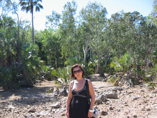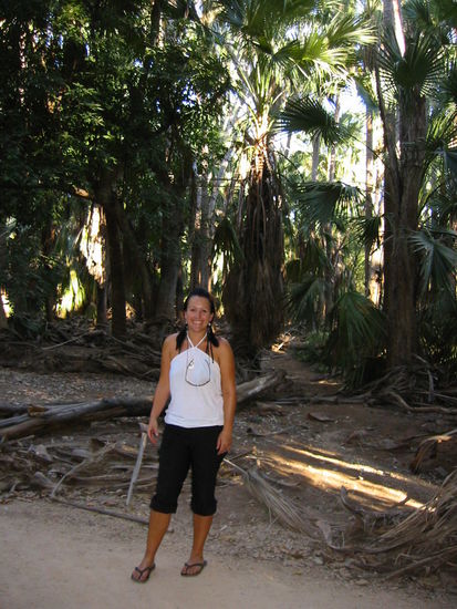 Die nächsten 1500 km Richtung Norden nach Darwin führten über den Stuarthighway, dem eigentlich auch einzigen Highway in der Mitte Australiens. Auf diesem ätzend langen und wieder recht eintönigen Weg gab es eigentlich nur die Devils Marbles zu sehen und die Thermalquellen von Mataranka, aus denen konstant täglich einige Millionen Liter kristallklaren und 34 Grad warmen Quellwasser fliessen, welches sich in natürlichen Pools sammelt. Dort haben wir auch gleich für 2 Tage Rast gemacht und einfach mal nur relaxt von all den Walks, die wir hinter uns haben, bzw. auch noch vor uns. Da die Aussentemperatur um die 30 Grad betrug, war das Wasser keine wirkliche Abkühlung, aber Tascha hatte endlich ihre ersehnte "Badewanne". Wenn auch ohne Schaum und Quietsche-Entchen! Bei einem nur 2km langen Botanikwalk, an denen nun auch immer häufiger Krokodilwarnschilder auftauchen, bekam ich dann auch endlich die lang erwartete Schlange vor die Linse! Diese Python schlängelte sich keine 50 cm entlang des Weges und war ein beachtliches Prachtstück von bestimmt 3 Meter Länge. Sie war eigentlich grau und schimmerte in der Sonne regenbogenfarben. Wollte sie eigentlich Tascha um den Hals hängen, aber wie Frauen nunmal so sind, war sie für dieses kleine lächerliche Späßchen mit einer niedlichen Würgeschlange nicht zu haben! Vielleicht such ich ihr einfach ein anderes süsses Tierchen...!