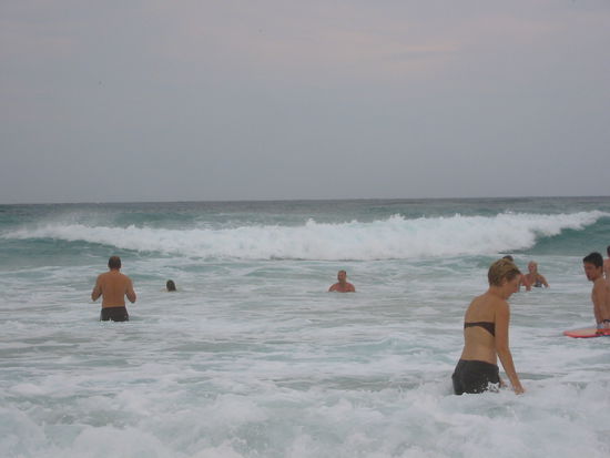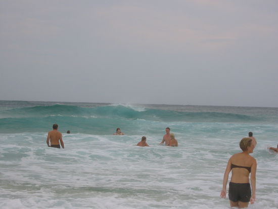 Ok, Haiattacken haben wir keine zu Gesicht bekommen, trotz der ganzen schmackhaften Surfer, aber wir wurden Zeuge, wie gleich 5 Erwachsene mittleren Alters von den Lifesavern per Boot aus den Wellen gezogen werden mussten, da sie das Ufer sonst wohl nicht mehr eigenständig erreicht hätten.