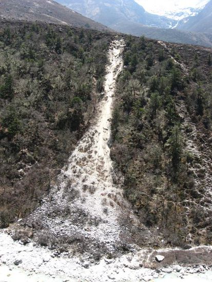 Zur Zeit unserer Ankunft befanden sich ganze 31 Expedtionsteams im EBC (28 Teams fuer Everest, 3 Teams fuer den suedwestlich von Everest gelegenen Nachbarberg Nuptse 7864m). Fuer Aufruhr im EBC sorgten in diesen Wochen die Chinesen: Diese hatten ueber die tibetische Seite des Mount Everest eine chinesische Olympia-Expeditionstruppe entsandt, um das olympische Feuer auf den hoechesten Punkt der Welt (8850m) zu tragen. Und dafuer wurde der Berg auf der tibetischen Seite komplett und auf der nepalesischen Seite ab Camp 2 (von gesamt 4 Camps) bis 10. Mai gesperrt! Das beste Wetter fuer die Besteigung von Everest ist normalerweise die zweite Maihaelfte. Das Problem ist aber, dass diese vielen Expeditionsteams zuvor ja noch Camp 3 und Camp 4 errichten, Fixseile verlegen, und etliche Akklimatisationsmaersche in den groesseren Hoehen ablegen muessen, um fuer den Gipfelsturm geruestet zu sein. Verkehrsstaus sind so wieder vorprogrammiert, und eine Katastrophe wie 1996 kann man nie ausschliessen. Zudem wurden im Base Camp saemtliche Kommunikationsmittel konfisziert. Die nepalesische Polizei/Army unterstuetzte diese Vorgehensweise der Chinesen tatkraeftig, wobei angeblich wirtschaftliche Hilfe fuer zwei Wasserkraftwerke in Nepal dahinter steht. Anfang Mai wurde das EBC dann wie ich hoerte, aber nicht selber bezeugen kann, sogar fuer Trekker geschlossen. Das chinesische Team erreichte am 8. Mai dann den Gipfel. In meinen Augen eine ziemlich sinnlose Aktion auf Kosten der vielen anderen Bergsteiger und Trekker.