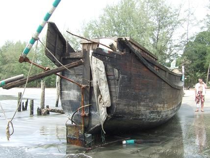 Burmesisches Fluechtlingsschiff. War eines morgens ploetzlich am Strand. Die Armen wurden wohl von der thailaendischen Wassergrenzpolizei erwischt und abgeschoben.