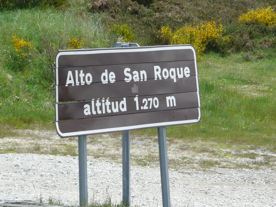 Nach der Staerkung geht es weiter bergauf. Auf 1.270 m hoch auf den Alto de San Roque. Oben angekommen machen wir erstmal ein Pilgerpaeusschen.