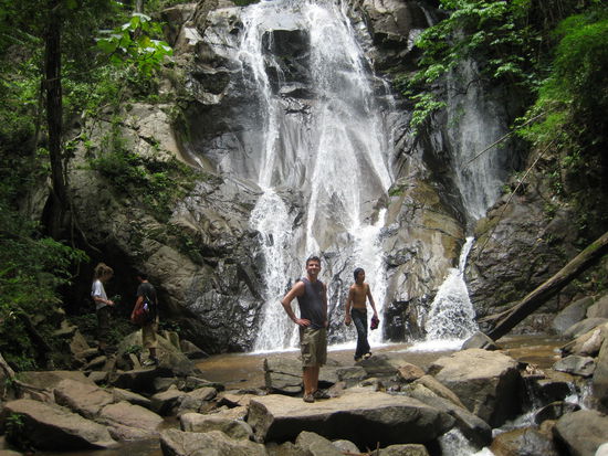Dann hiess es 1 Stunde Fussmarsch zu einem Wasserfall, wo wir baden durften, das war schoen.
